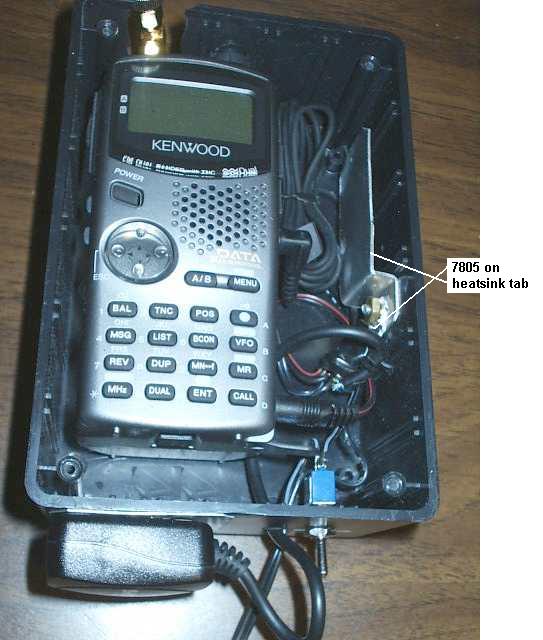 those may help to "quiet" the circuit.I did not mount my voltage regulator on a special circuit board but simply screwed it to the side of the box on top of a sink tab - a simple strip of tin about two inches long to disperse the heat (works fine). All the connections are simply soldered to the 7805 tabs, the switch, etc.